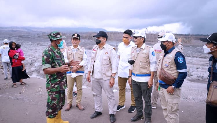 Ketua Dewan Penasehat Partai Gerindra DPD Jawa Timur, Bambang Haryo Soekartono bersama DPC Partai Gerindra Surabaya, Lumajang dan Malang saat meninjau dan menyerahkan bantuan Bencana Erupsi Gunung Semeru.Foto Partai Gerindra Jatim